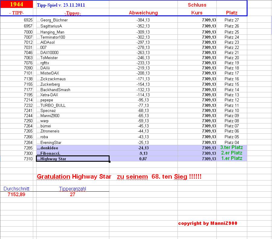 Gewinnerlinks 1.944.DAX Tipp-Spiel, Freitag , 23.11.2012, 17.45 Uhr, 7.309,13