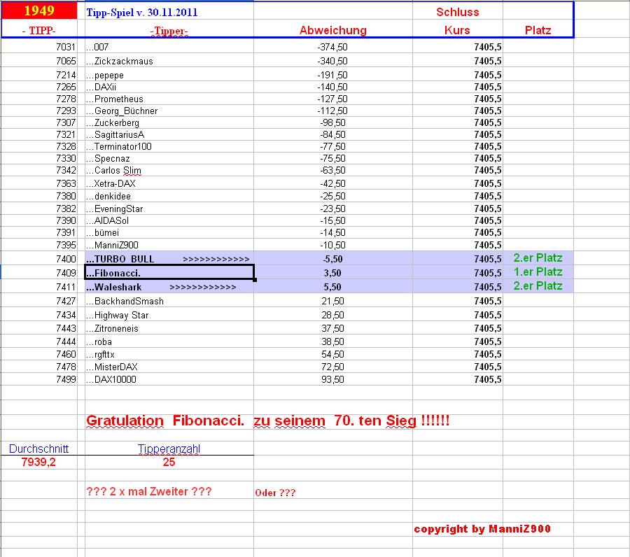 Gewinnerlinks 1.949.DAX Tipp-Spiel, Freitag , 30.11.2012, 17.45 Uhr, DAX 7.405,50