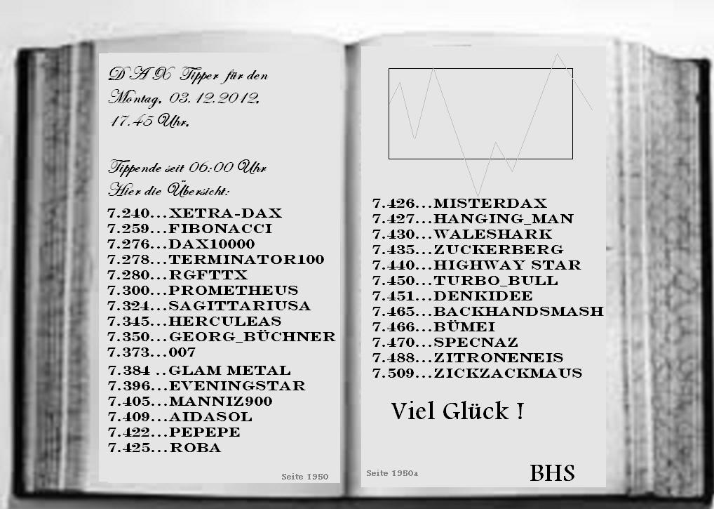 1.951.DAX Tipp-Spiel, Dienstag, 04.12.2012,17.45 Uhr, DAX ....???