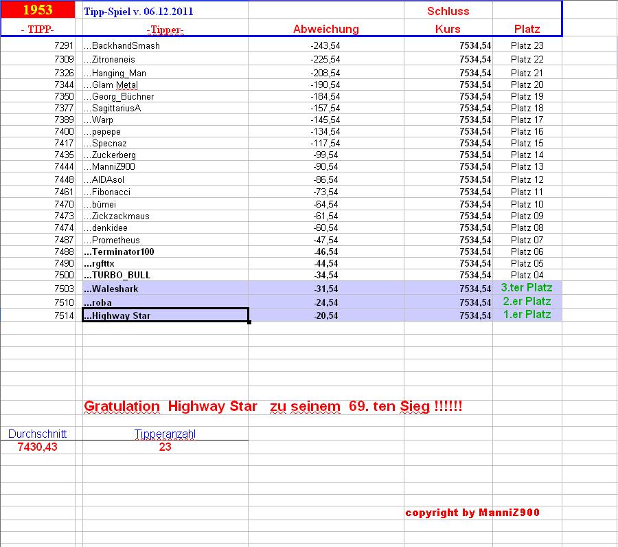 Gewinnerlinks 1.953.DAX Tipp-Spiel, Donnerstag , 06.12.2012, 17.45 Uhr, 7.534,54