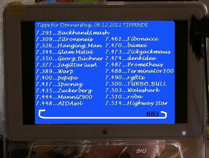 TIPPENDE für Freitag, 07.12.2012, 31 Tipps vorhanden, weiter so - richtig gut !