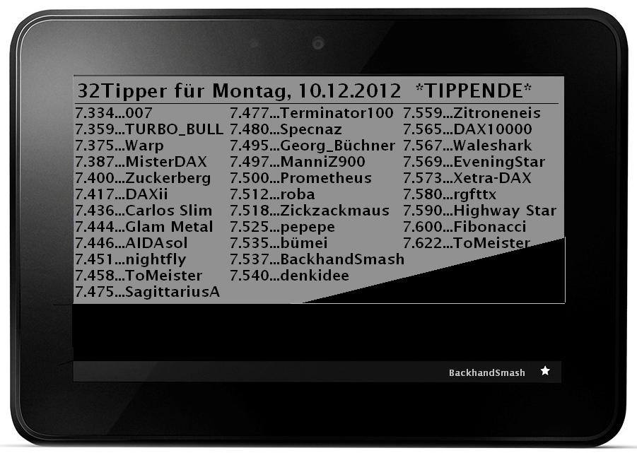1.956.DAX Tipp-Spiel, Dienstag, 11.12.2012,17.45 Uhr, DAX ....???