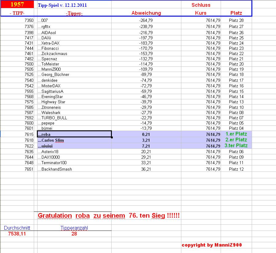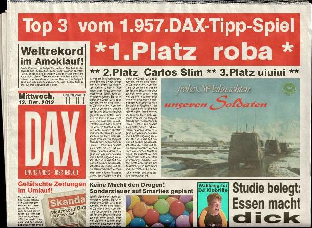 1.958.DAX Tipp-Spiel, Donnerstag, 13.12.2012,17.45 Uhr, DAX ....???