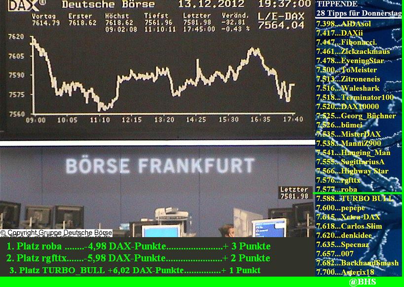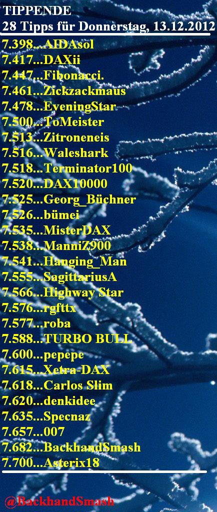 1.959.DAX Tipp-Spiel, Freitag, 14.12.2012,17.45 Uhr, DAX ....???