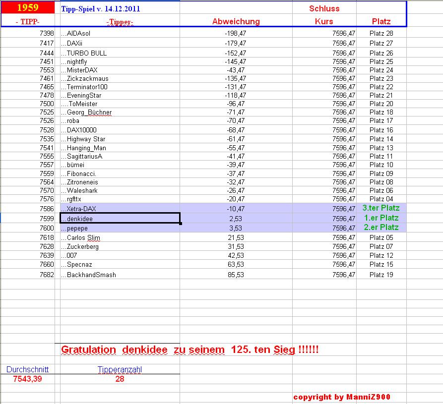 Berichtigung...Punkteverteilung inkl. 1.959. DAX-Tipp-Spiel