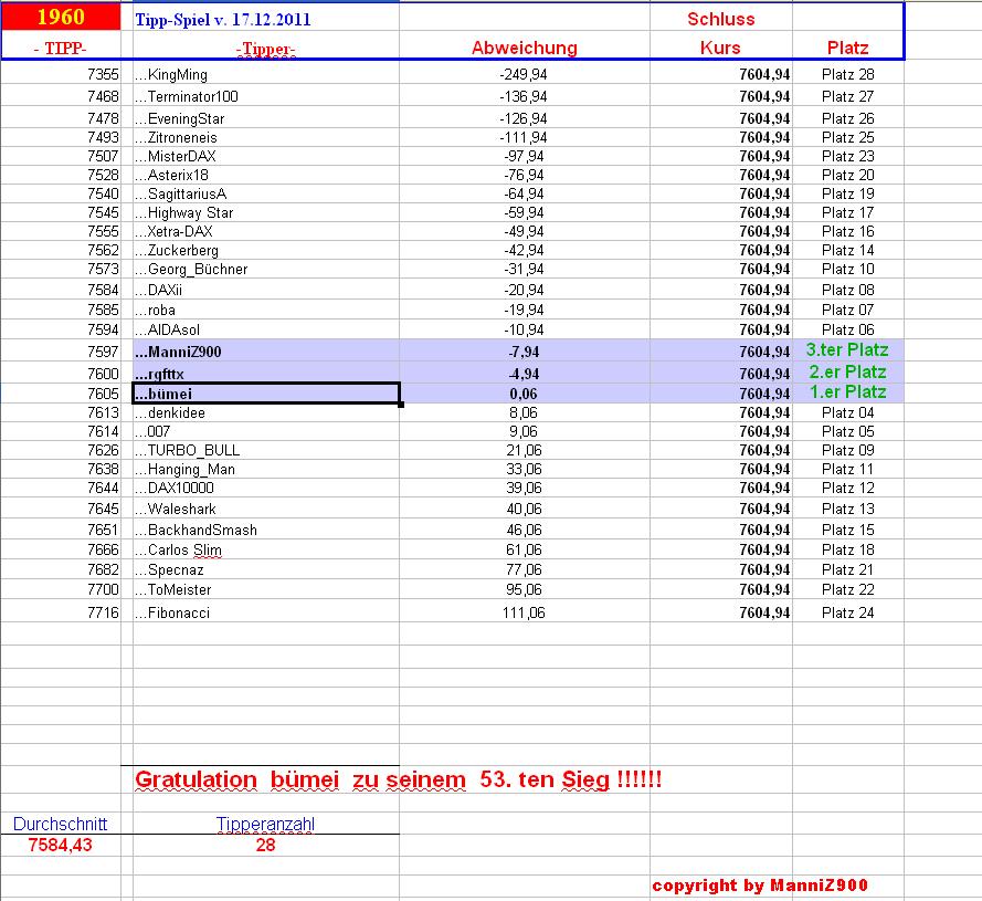 1.961.DAX Tipp-Spiel, Dienstag, 18.12.2012 562762