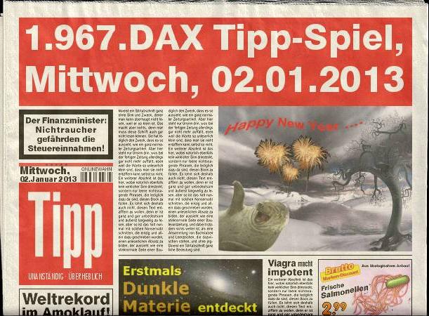 1.967.DAX Tipp-Spiel, Mittwoch, 02.01.2013,17.45 Uhr, DAX ....???
