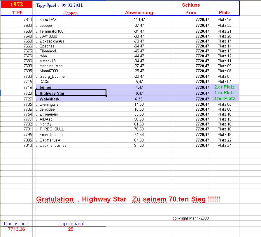 1.973.DAX Tipp-Spiel, Donnerstag, 10.01.2013,17.45 Uhr, DAX ....???