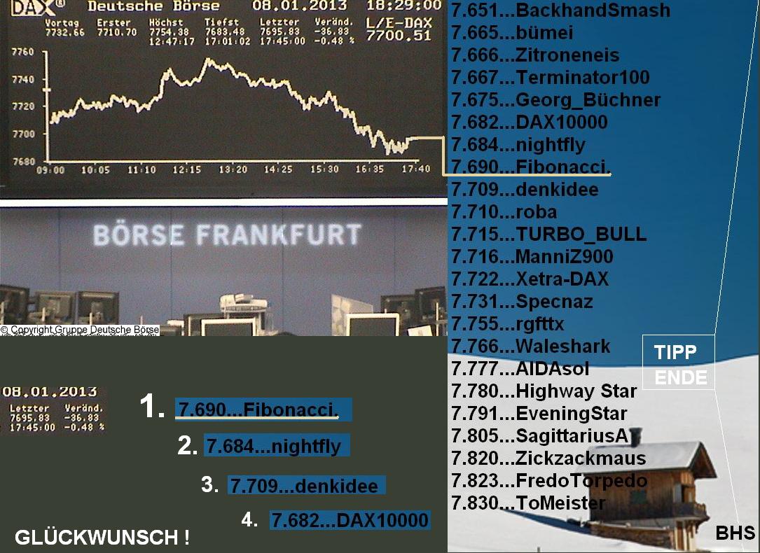 1.973.DAX Tipp-Spiel, Donnerstag, 10.01.2013,17.45 Uhr, DAX ....???
