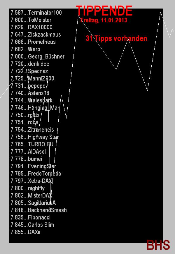 1.975.DAX Tipp-Spiel, Montag, 14.01.2013,17.45 Uhr, DAX ....???