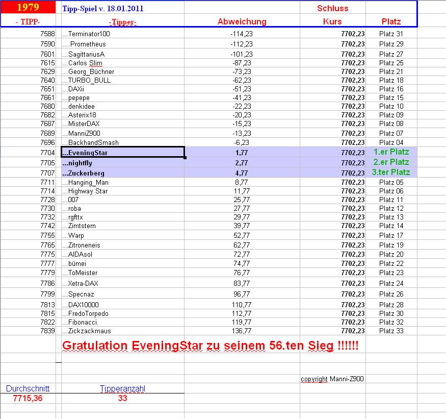 1.979.DAX Tipp-Spiel, Freitag, 18.01.2013, 17.45 Uhr, DAX 7.702,23