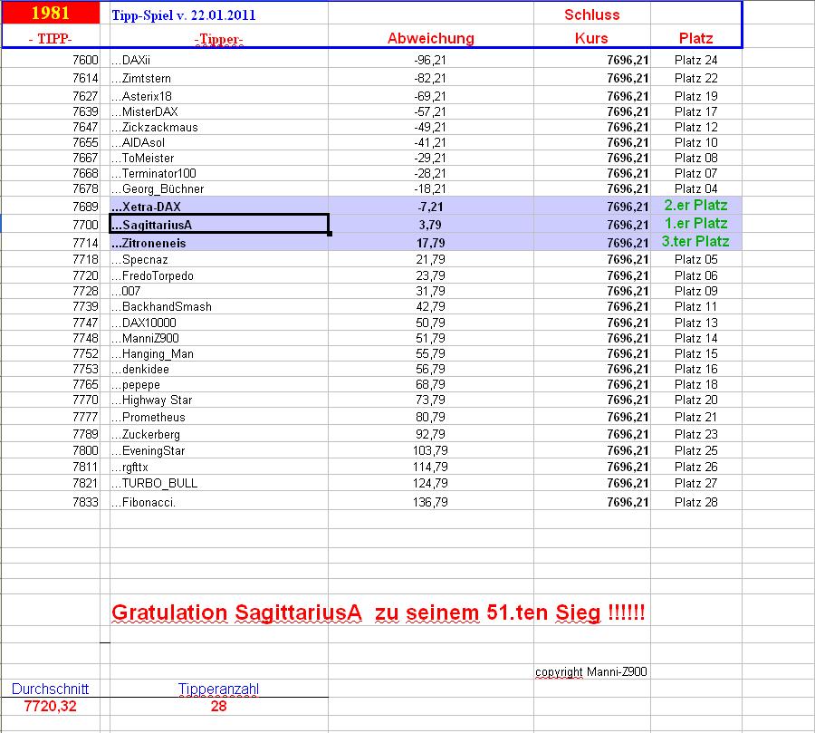 1.982.DAX Tipp-Spiel, Mittwoch, 23.01.2013 571622