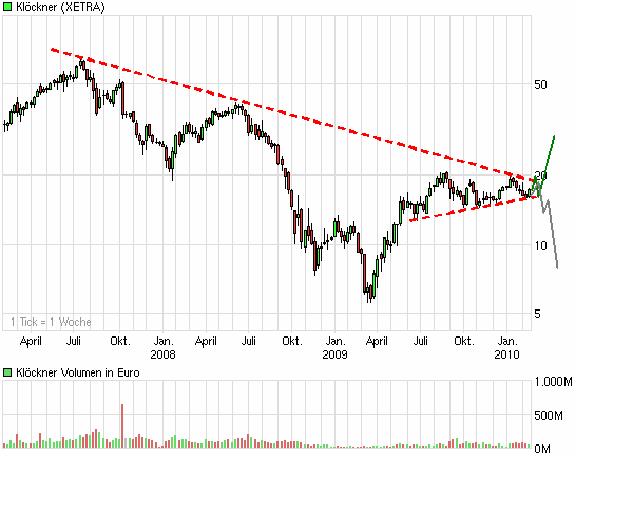 Für mich heißt das, Klöckner innerhalb der Range zu traden. Bei Über-oder Unterschreiten der 20 EUR oder 15 EUR Marke kann man sich entsprechend positionieren zur Gewinnoptimierung / Risikoverringerung.