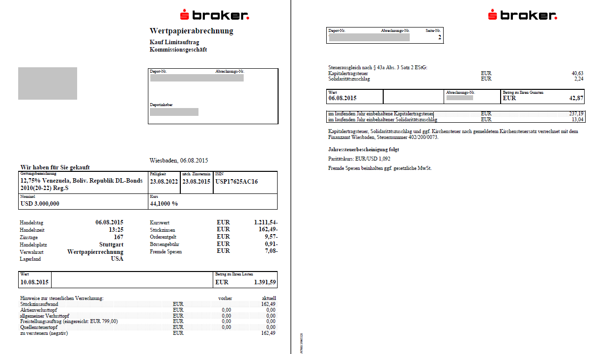 Das sind zwar möglicherweise Ramsch-Anleihen, aber im Prinzip hätte man den Kaufpreis schon nach etwa 3 Jahren allein durch die Zinsen wieder raus, was aber auch vom Wechselkurs abhängt. Die aufgelaufenen Stückzinsen zahlt man zunächst mit, die werden dann am nächsten Zinstermin erstattet.