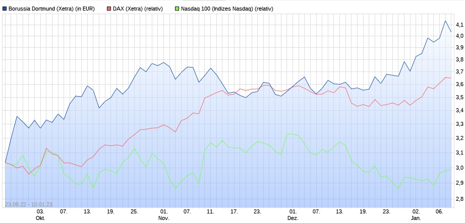 Die BVB Aktie performt in 12 Monaten zweistellig besser als der SDAX, sie performt im Kalenderjahr 2022 besser als der SDAX und sie performt im noch sehr jungem Kalenderjahr 2023 besser als der SDAX. Und sorry, das konnte man bestens antizipieren, man weiß was Eindeckungen von Leerverkäufen in der spieltagsfreien Zeit bedeuten können, man kennt seit Jahrzehnten die Kursentwicklung in der Sommerpause. Ohne Kursentwicklung in der spieltagsfreien Zeit stünde die BVB Aktie jetzt unter 0.