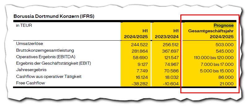 "Zum 31. Dezember 2024 verfügte Borussia Dortmund über liquide Mittel in Höhe von TEUR 1.090, die