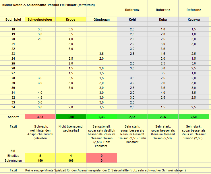 Löw lässt nach eine super Rückserie von Gündogan, der hatte so viel Selbstvertrauen, komplett links liegen! Schweinsteiger wäre ja so wichtig und der Gegner hätte größeren Respekt! Lächerlich! Man muss sich nur seine Interviews nach den Spielen angucken! "Es ist nicht normal das man so viel laufen muss"! Der ist mental und körperlich total am Ende! Wenn Löw das nicht sieht, was alle Zuschauer gesehen haben, tut es mir leid! Man hätte auch Bender bringen können! Offensiv hat Schweinsteiger eh nichts vollbracht! Bender hätte offensiv das auch vollbracht und defensiv ist der 3 Klassen besser, selbst wenn Schweinsteiger in topform ist!