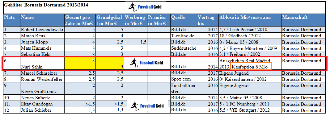Sahin: BVB macht Nägel mit Köpfen - 11.03.14 10:08 - www.sport.de/medien/fussball/bundesliga-1/...oepfen.html => "... Laut ‚Bild‘ zieht der BVB die Kaufoption für den 25-Jährigen. Knapp sieben Millionen Euro überweisen die Dortmunder an Real Madrid, wo der Mittelfeldspieler bis 2017 unter Vertrag stand. Sein Gehalt soll auf drei Millionen Euro pro Jahr aufgestockt werden. Über die Länge der Vertragslaufzeit ist derzeit noch nichts bekannt..."