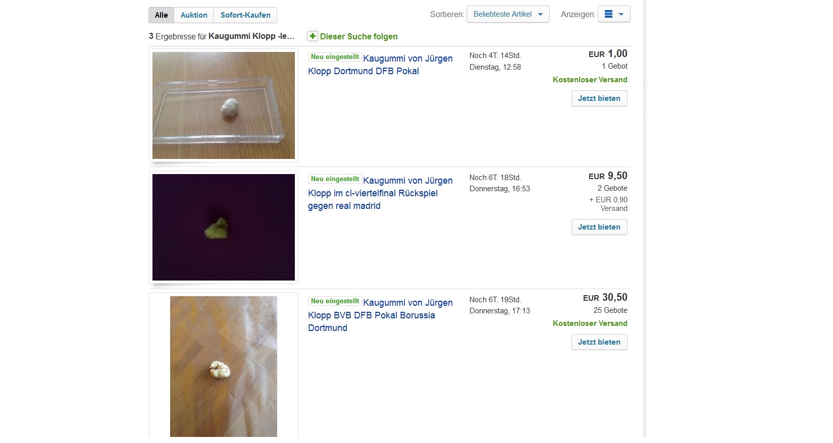 17.04.2014 - Ebay-Knaller schon bei 110 Euro Zustand: gebraucht! BVB-Fan versteigert Klopp-Kaugummi - www.focus.de/sport/fussball/bundesliga1/...3175.html?drucken=1