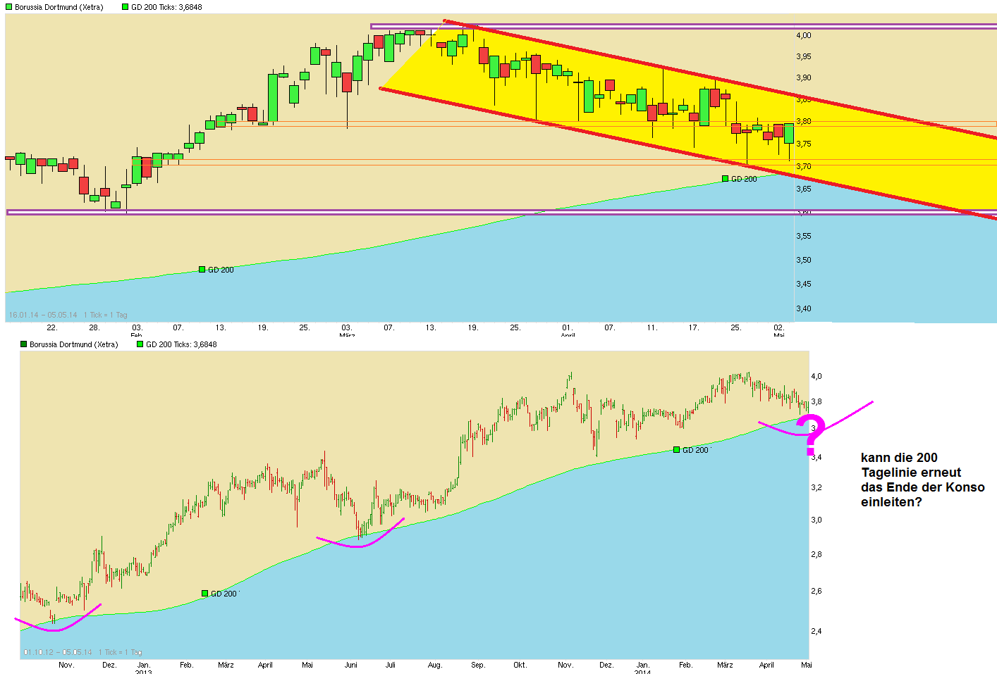 ist leider noch viel Zeit und die EMA200 ist nicht mehr weit. Nach dem bereits der Uptrend gebrochen wurde, wird es langsam höchste Eisenbahn, dass wir hier drehen.