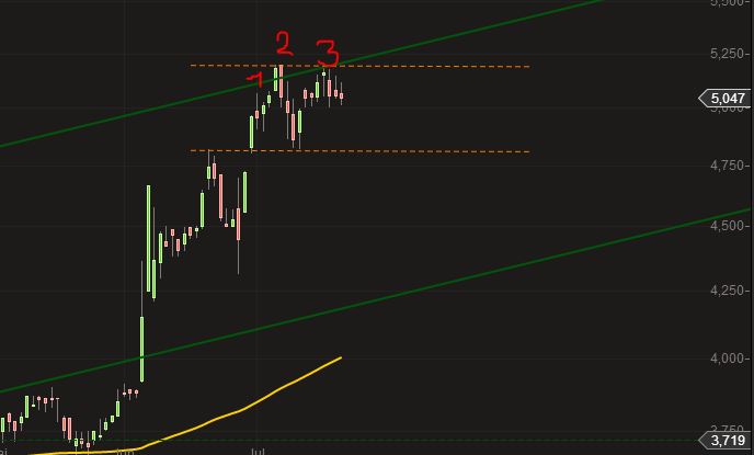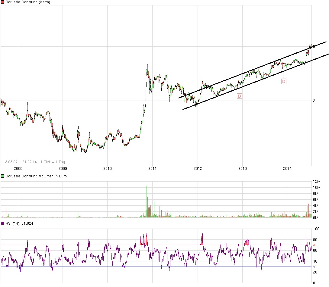 #9876 :"...Sollten wir jetzt unter 5 fallen, dann droht so langsam auch ein Rückfall in den für meinen gierigen Geschmack zu flachen Trendkanal seit 2012..." =====================