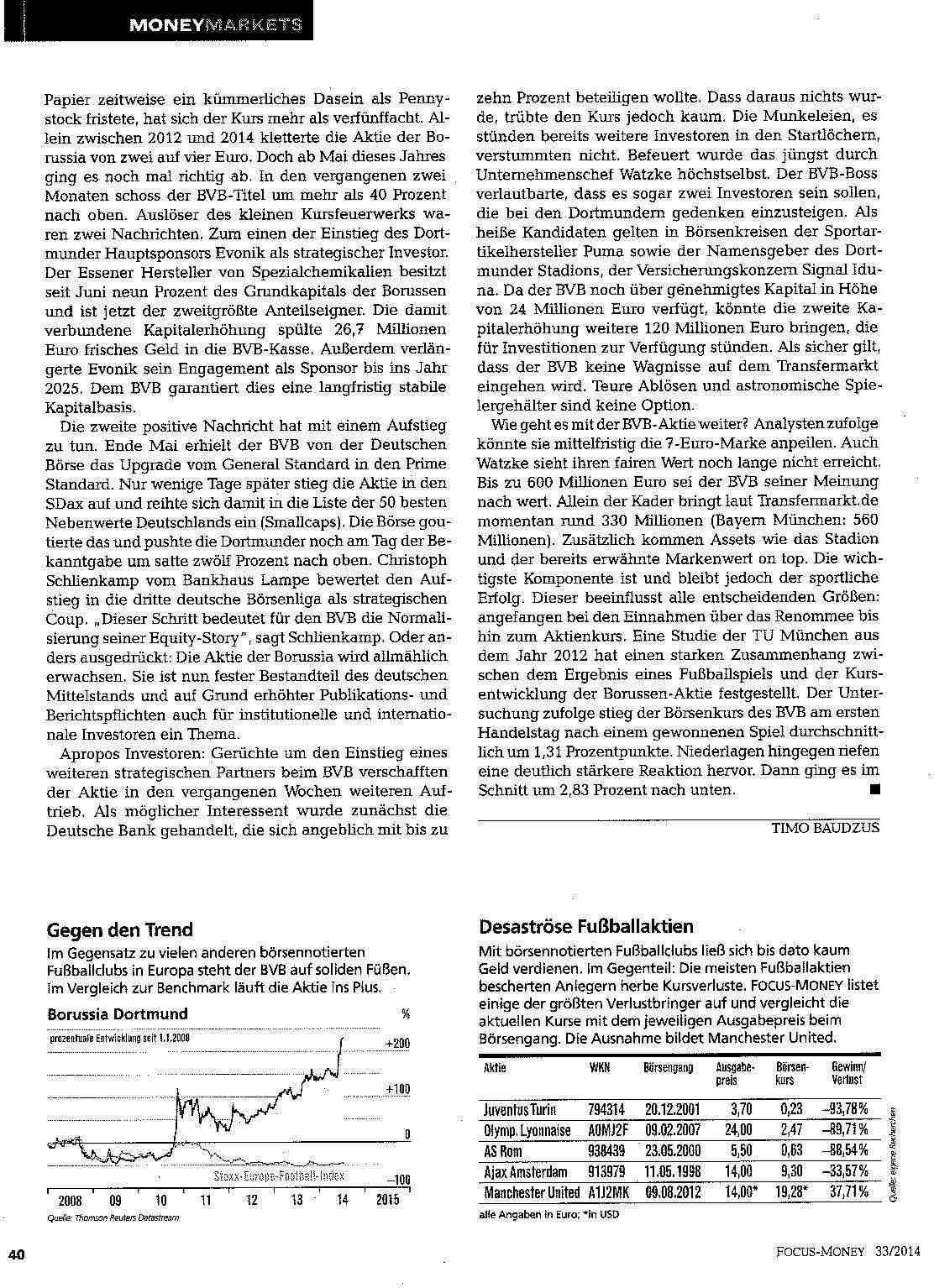 was will man machen. Ukraine scheint sich ja noch Monate vor sich herum zu schieben....dann geht es diese Zeit lang ggf. auch abwärts.Und der BVB ist momentan in guter Verfassung. Tja, was haben wir mit der Ukraine am Hut. Und das mit der schwäche und nachkaufen kennen wir ja. Natürlich ging es langfristig hoch, worüber wir uns auch gefreut haben. Aber das Problem hatten wir schon Ende November als wir knapp über 4€ waren. Dann dauerte es über 7 Monate, bis es wieder über 4€ Richtung 5€ ging und wer weiß, vielleicht warten wir jetzt 12 Monate bis es Richtung 6€ geht. Langfristig alles okay....aber auch als Long Aktionär nen totaler scheiß. Man regt sich dann trotz langfristig positiver Entwicklung auf! Ja, und aufwärts ging es auch nur, wo die Nachricht mit den Investoren kam. Hätte man den Ukraine scheiß nicht, wäre man wohl schon völlig zu recht bei 9€ oder mehr. Ukraine, was hat das mit dem BVB zu tun, fragt man sich nur noch. Der Kurs könnte noch viel mehr steigen, wenn nicht immer diese unnötigen Hänger vorhanden wären.