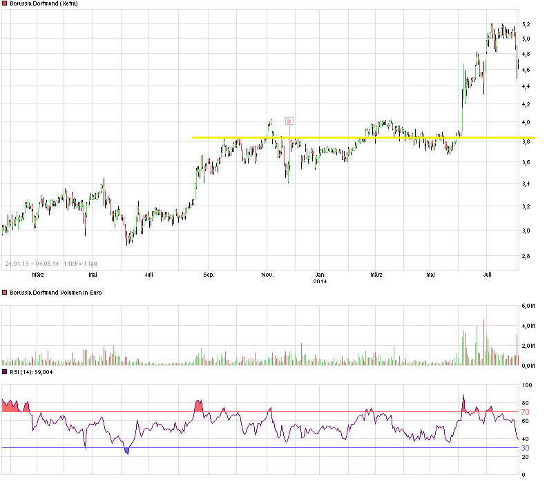 Ich denke, daß Borussia Dortmund ohne Champions League mindestens 240 Millionen Umsatz haben wird und daß der Markt am langen Ende sehr wohl höhere Aktienkurse für gerechtfertigt halten wird. Also ganz konkret innerhalb von 12 Monaten deutlich mehr als 4 Euro.