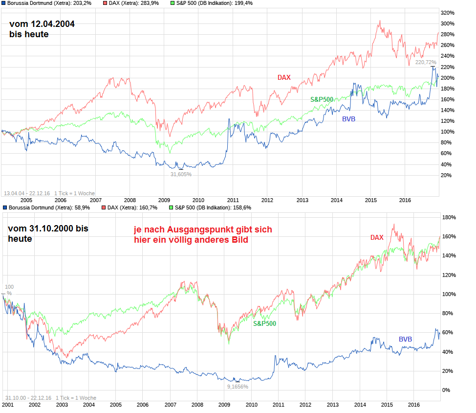 immer besser als der Markt, keine Ausnahme. Letzte Winterpause ging es erstmalig in der Winterpause runter, allerdings nur, weil die Märkte da so stark wie noch nie konsolidierten zu Beginn eines neuen Kalenderjahres. Es war für den DAX, Dow Jones und co. der schwächste Beginn in ein neues Kalenderjahr aller Zeiten. Daher ging die BVB da auch runter, allerdings nicht so stark wie der DAX.