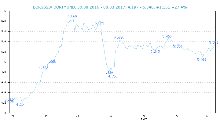 also ich denke schon das der Kurs auch noch von anderen Events getireben sein dürfte, wenn der BvB jetzt gegen Lotte gewinnt was zwar alle erwarten aber dennoch nicht feststeht steht man im Halbfinale des Pokals ! gegen Bayern , da weiderum erwartet niemand ein Weiterkommen , falls das gelingt dürfte der Kurs schon ein wenig Hüpfen