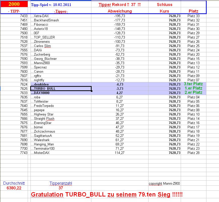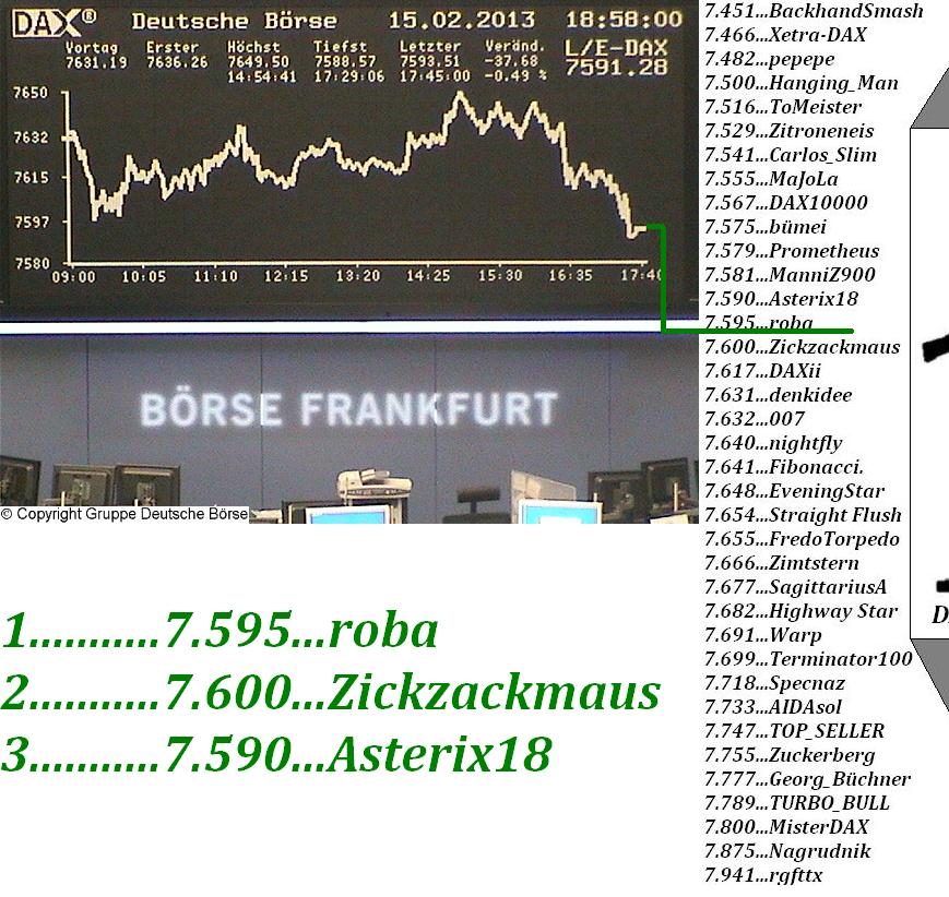 2.001.DAX Tipp-Spiel, Dienstag, 19.02.2013,17.45 Uhr, DAX ....???