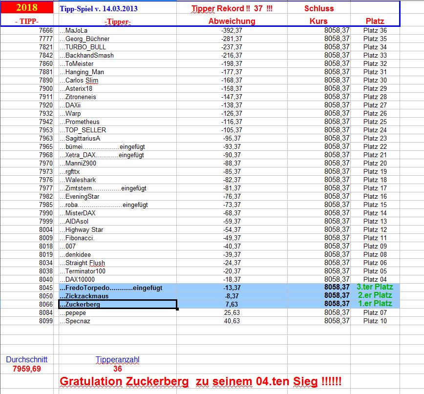 2.018. DAX Tipp-Spiel, Donnerstag , 14.03.2013, 17.45 Uhr, DAX 8.058,37