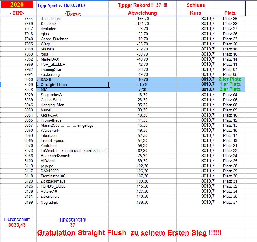 Gewinnerlinks 2.019. DAX Tipp-Spiel, Freitag , 15.03.2013, 17.45 Uhr, DAX 8.042,85