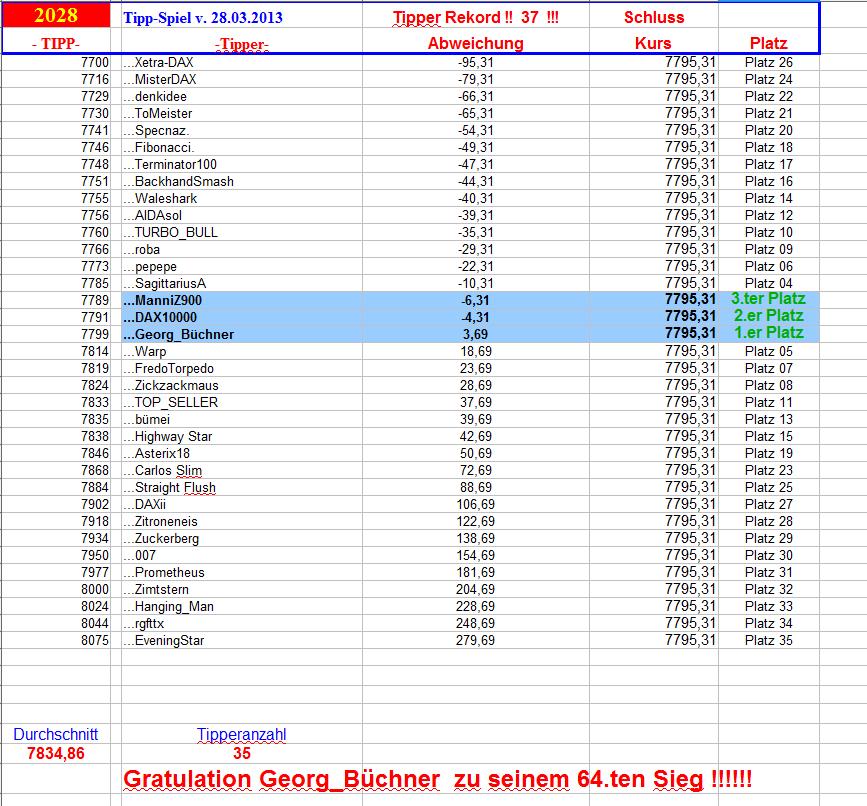 Gewinnerlinks 2.027. DAX Tipp-Spiel, Mittwoch , 27.03.2013, 17.45 Uhr, DAX  7.789,09