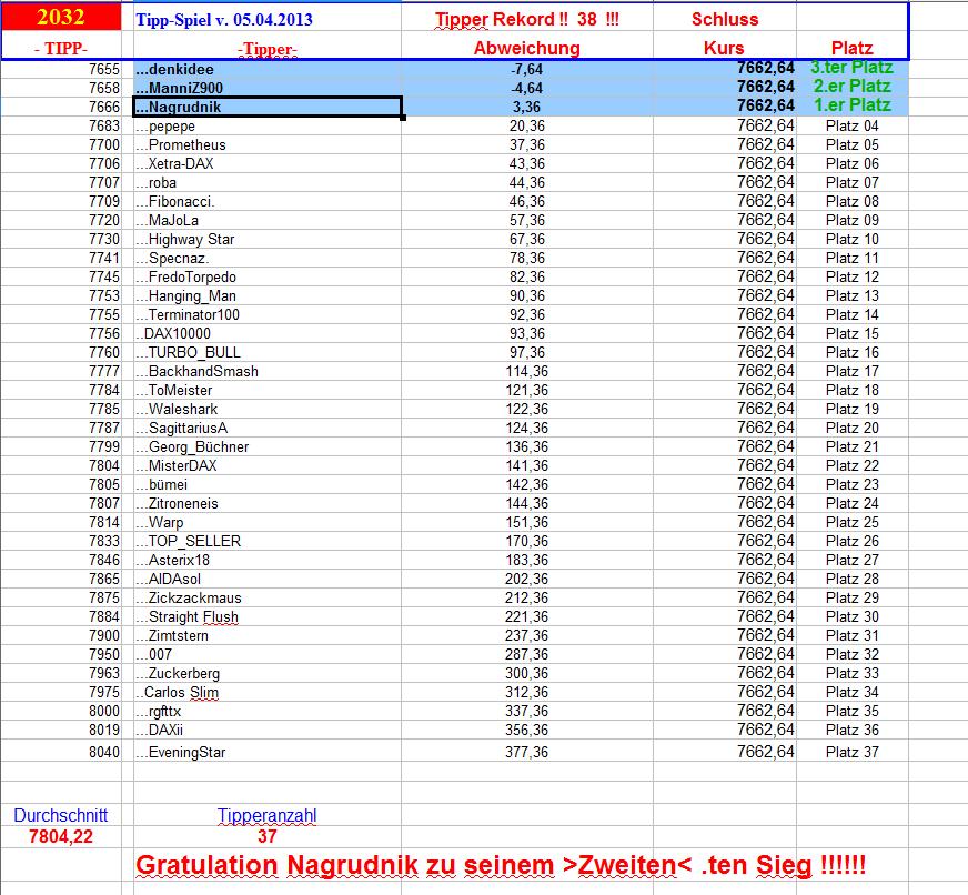 2.034.DAX Tipp-Spiel, Dienstag, 09.04.2013,17.45 Uhr, DAX ....???