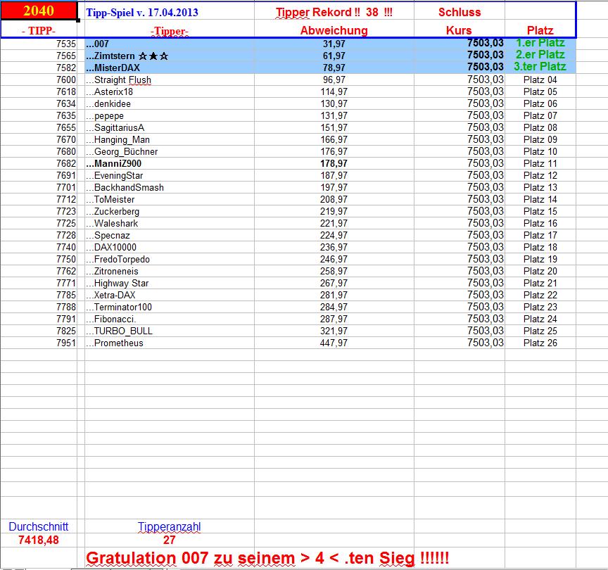 2.041.DAX Tipp-Spiel, Donnerstag, 18.04.2013,17.45 Uhr, DAX ....???