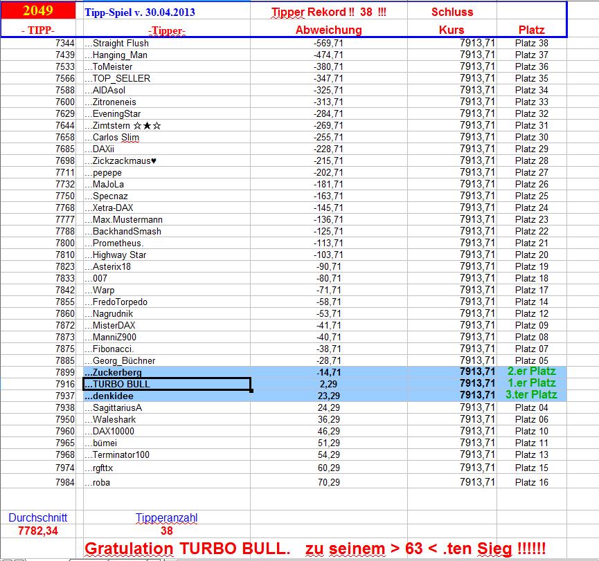 2.049.DAX Tipp-Spiel, Dienstag, 30.04.2013
