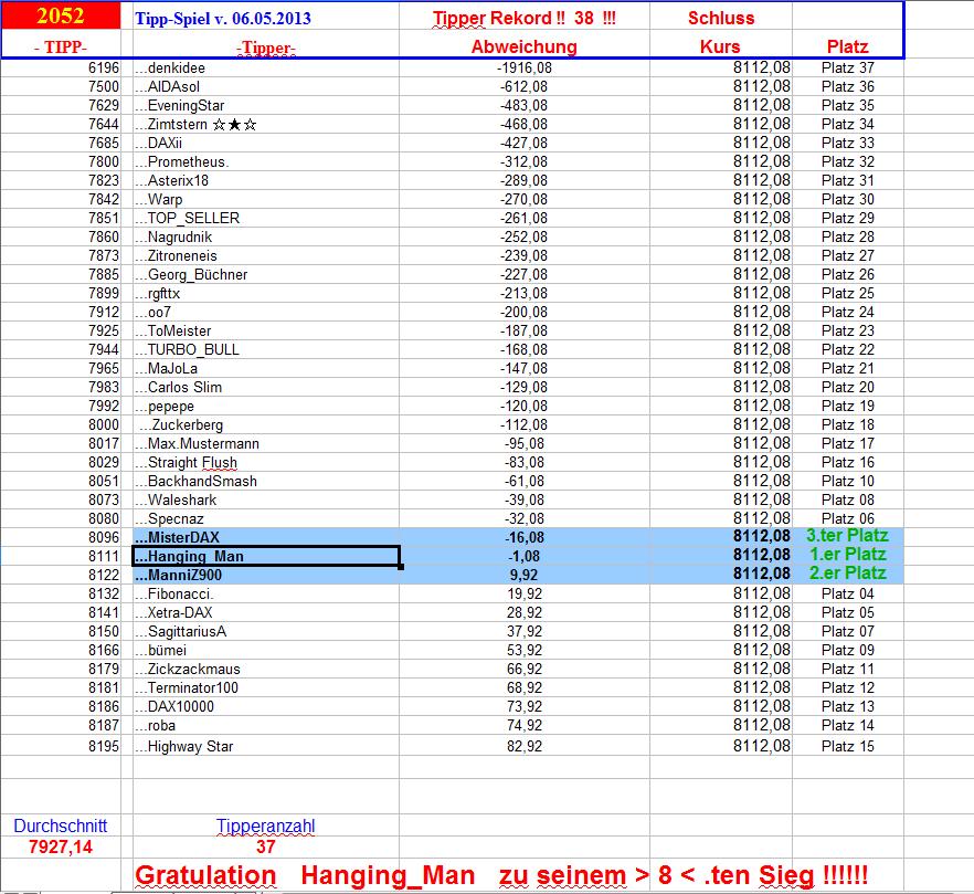 2.053.DAX Tipp-Spiel, Dienstag, 07.05.2013