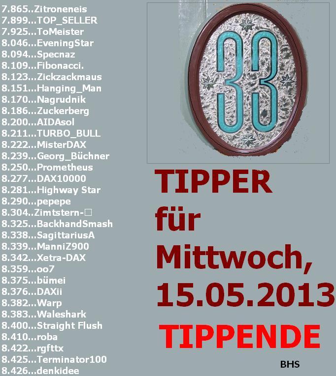 2.060.DAX Tipp-Spiel, Donnerstag, 16.05.2013,17.45 Uhr, DAX ....???