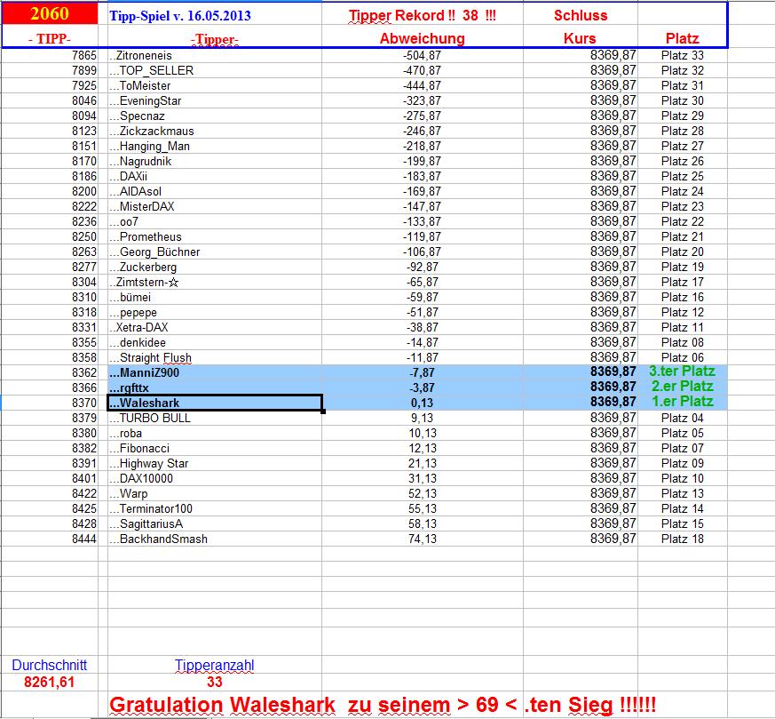 2.061.DAX Tipp-Spiel, Freitag, 17.05.2013,17.45 Uhr, DAX ....???