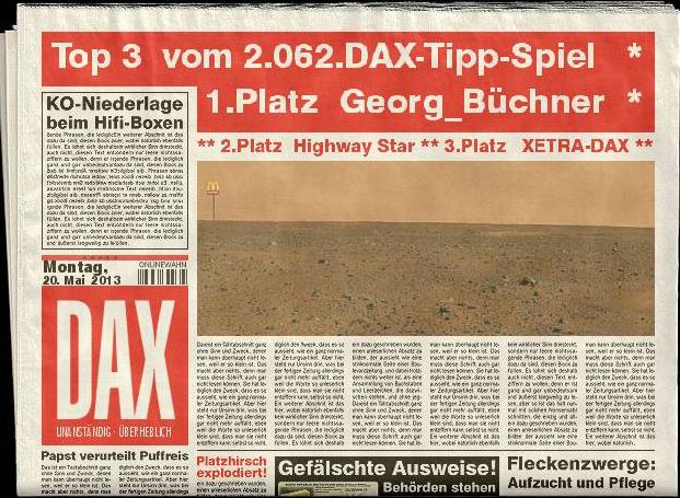 Gewinnerlinks 2.062. DAX Tipp-Spiel, Montag 20.05.2013, 17.45 Uhr, DAX  8.455,83