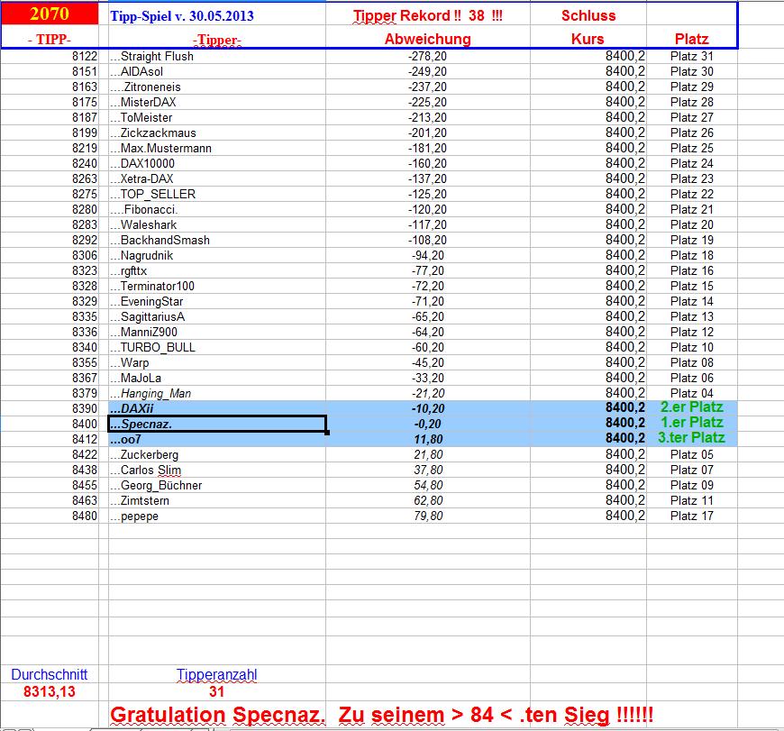 2.071.DAX Tipp-Spiel, Freitag, 31.05.2013,17.45 Uhr, DAX ....???