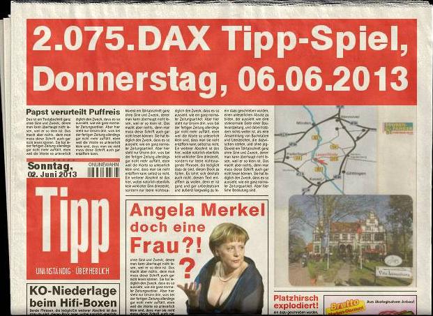 2.075.DAX Tipp-Spiel, Donnerstag, 06.06.2013,17.45 Uhr, DAX ....???
