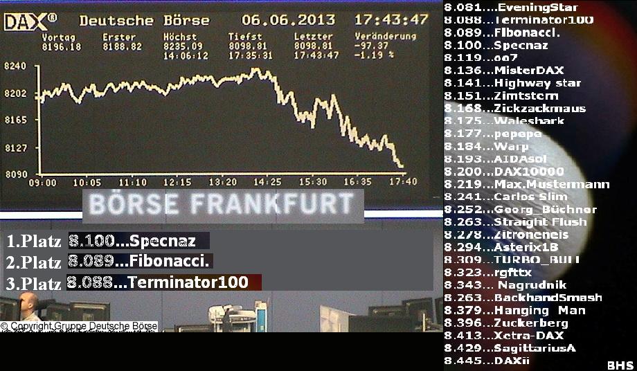 2.077.DAX Tipp-Spiel, Montag, 10.06.2013,17.45 Uhr, DAX ....???