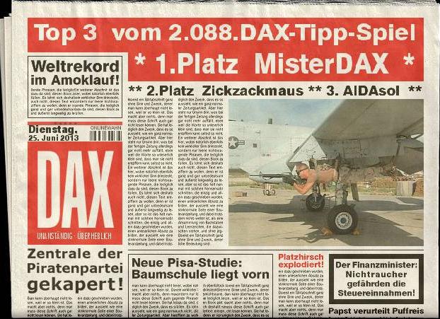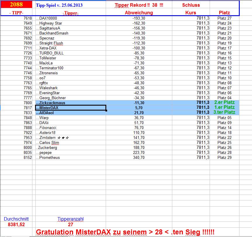 2.089.DAX Tipp-Spiel, Mittwoch, 26.06.2013,17.45 Uhr, DAX ....???