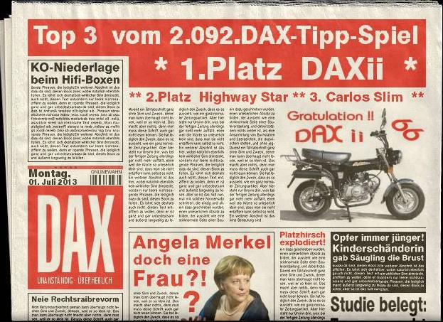 2.093.DAX Tipp-Spiel, Dienstag, 02.07.2013,17.45 Uhr, DAX ....???