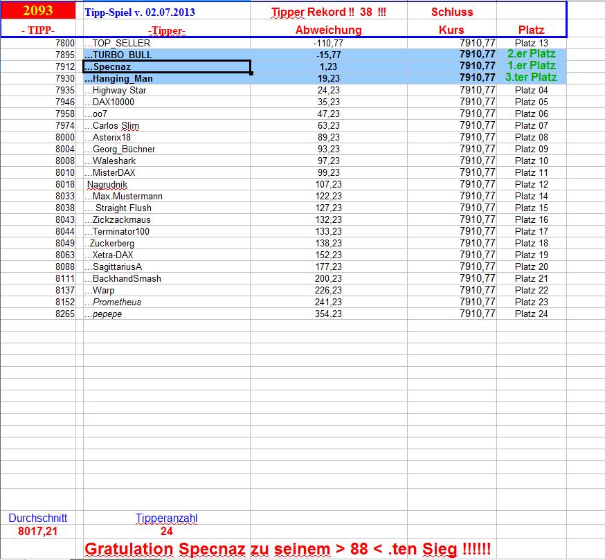Gewinnerlinks 2.092. DAX Tipp-Spiel, Montag 01.07.2013, 17.45 Uhr, DAX 7.983,92