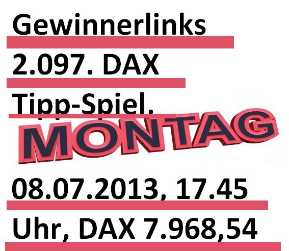 Gewinnerlinks 2.097. DAX Tipp-Spiel, Freitag 08.07.2013, 17.45 Uhr, DAX 7.968,54