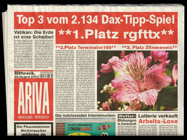 2.135.DAX Tipp-Spiel, Donnerstag, 29.08.2013,17.45 Uhr, DAX ....???