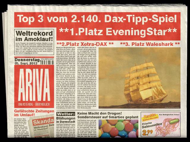 2.141.DAX Tipp-Spiel, Freitag, 06.09.2013,17.45 Uhr, DAX ....???