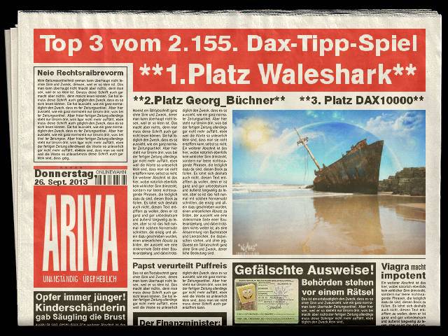 2.156.DAX Tipp-Spiel, Freitag, 27.09.2013,17.45 Uhr, DAX ....???